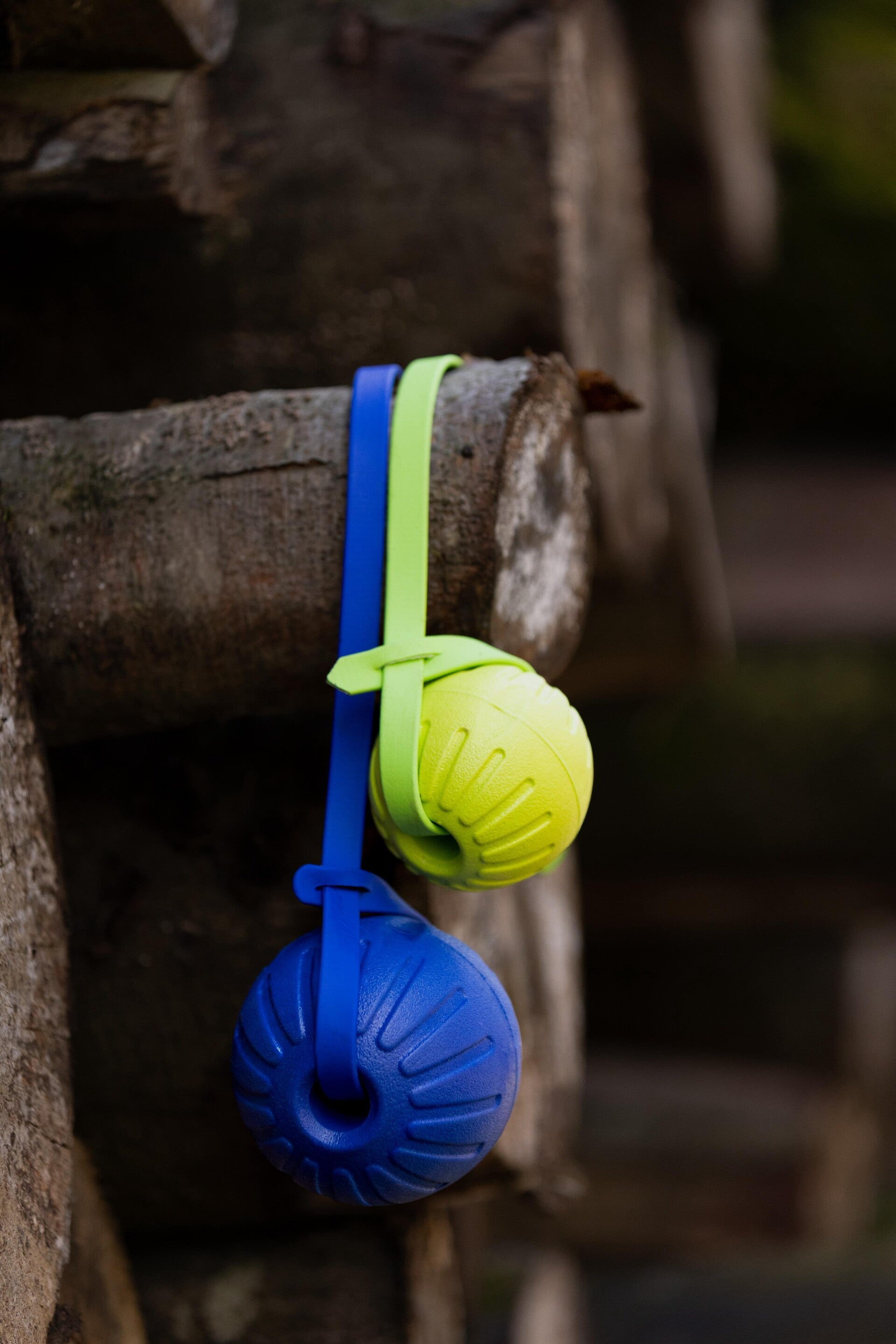 Der Ball selbst ist robust, der Griff besteht aus 13 mm breiter Biothane, die angenehm in der Hand liegt und sich leicht reinigen lässt. Am Ende des Griffs befindet sich ein kleiner Knoten – es sind keine Schrauben oder harte Teile verbaut, sodass dein Hund sicher spielen kann, ohne sich zu verletzen.